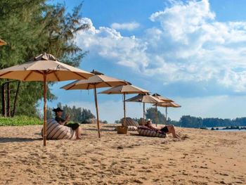 Великолепный пляж только для гостей отеля, с одной стороны ограничен речкой, с другой полем для гольфа, с третьей каким-то военным объектом. Можно гулять вдоль пляжа по мокрому утрамбованному песку 2-3 км и не встретить ни одного человека, только сотни маленьких крабиков! Лежаки на пляже расположены в тени под большими соснами. Народу не больше 30-50 чел, остальные отдыхают у бассейнов. Большие номера с бассейном на первом этаже , ночью открывали балкон и выключали кондиционер, спать очень комфортно. Завтрак нормальный, все есть, омлеты готовят очень вкусные. Вокруг отеля почти ничего нет, пара маленьких магазинов и ресторанчиков, до центра кхао лака ходит бесплатный шатл 3 раза в день. Нам понравился недорогой ресторан Lanna с морепродуктами на берегу, минут 10 от отеля