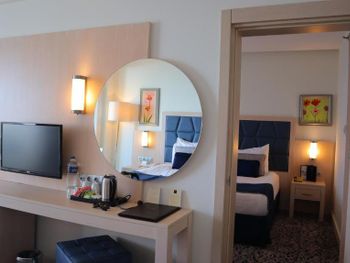 Маленький номер, бронировали как 3 взрослых, тк дочке уже 15 лет, ждали 2 дня пока поставят дополнительную кровать, пришлось спать втроём. Причём заявку на дополнительную кровать пришлось оставлять раз 5 на ресепшн и у гест релейшн. В итоге дополнительную кровать поставили и она стояла посередине номера. Так же и с полотенцами. Дали два комплекта полотенец, хотя нас 3 человека в бронировании было, третьегой комплекта тоже пришлось просить 2 дня, постоянно звоня на ресепшн.