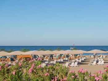 Большая территория и набережная, просторный песчаный пляж с мелководьем. Работал аквапарк, работали еще 2 теплых бассейна. Из хорошего, на это все.