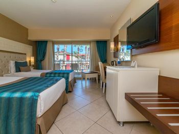 Номер Family Room перечеркивает все. Ощущение от блоков, где семейные номера, как от общежития. Вы будете слышать все, что происходит у вас за стеной, над вами, за вашей дверью, наслаждаться турецкой музыкой, которую слушает персонал отеля при уборке соседних с вами номеров. Мебель очень старая, в ужасном состоянии, особенного шарма добавляют сбитые углы столов, о которые предыдущие гости открывали бутылки (открывашек в номере нет). В ванной все стыки уже желто-рыжие, а работники отеля за 3 вызова не могут герметиком обработать слив в ванной, лужи с вами на все время пребывания.