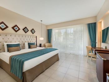 Сервиса в целом можно сказать нету никакого. Самое первое впечатление было ужасным. Персонал на ресепшене грубоватый, и всем видом показывает что отель полный и от твоего присутствия нам не жарко не холодно, что то не нравится ваши проблемы. Номер абсолютно не уютный приходили уже вечером помыться и ночью поспать в остальном не отдохнешь в номере. Нету зубной щетки, пасты и бритвы, нету халатов, мини бар скудный. Звонили принести нам горшок детский, щетки И так далее просто сбрасывают телефон. Горшок принесли после третьей попытки. Зубных щеток в отеле нету звонили каждый день в итоге просто бросали телефон. В целом мы понимали, что отель загруженный наверно это причина. Но персонал в отеле забыл про гостеприимство про улыбки и то что они создают всю атмосферу а не горки и море. Вернулась бы я в этот отель наверно нет. Но в отель из этой серии попробовала бы, там на территории еще два отеля. Это первая поездка в отель где я услышала такое количество слово «нет» . И больше в принципе не обращалась.