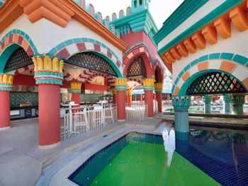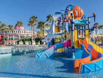 Территория большая, красивая. Много разнообразных активностей. Классные водные горки. Несколько отелей находятся на одной территории, можно пользоваться услугами всех отелей. Еда неплохая