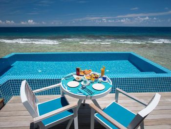 "All inclusive" - Не включает большим счетом ничего. Пример: бесплатное пиво - теплое, хотите холодного придется заплатить. В ресторане есть меню, что включено и то что можно доп заказать за цену. Несколько раз пробивали нам в счет не существующий заказ. Купили бутылку вина - в счете их 3. Естественно приносят счет и просят быстро подписать и не всегда вчитываешься. Но когда нам пытались впарить бутылку за 600 евро (та что в магазине на острове стоит 250), мы стали вчитыватся. Будьте готовы, что вас встречают как мешок с деньгами. Персоналу все равно на ваши просьбы. 2 дня отсутствовал интернет на вилле. Бассейн на вилле не чистили 10 дней. Мини бар пополняли только по звонку. Крышку унитаза так и не прекрутили, горячая вода заканчиваетя через 2 минуты, в джакузи тоже холодная вода, входная дверь просела и открывается на половину. В новогоднюю ночь нам предложили заблаговременно купить бутылку шампанского, мы так и сделали - подписали счет. Но персонал продал нашу Champagne Veuve Clicquot и предложили другое, которое тоже внесли в счет. В море зайти без тапочек невозможно - кораллы. Вилла 505
