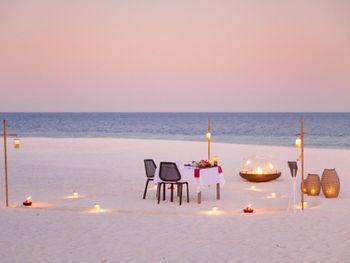 Молодоженам — гостям отеля Kandolhu Maldives — предоставляются специальные услуги: 30-минутный массаж, ужин при свечах из 3 блюд с игристым вином, корзина с фруктами и украшение постели цветами по прибытии.