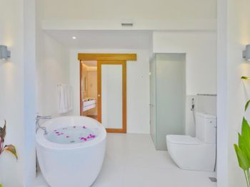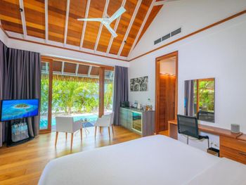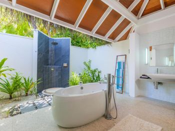 Просторная вилла курортного отеля Kandolhu Maldives оснащена телевизором с плоским экраном и Bluetooth колонкой. Собственная ванная комната с душем и ванной укомплектована феном.