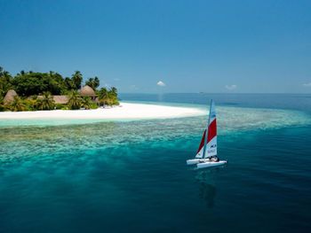 Расстояние от курортного отеля до международного аэропорта Мале составляет 70 км. Поездка на гидросамолете занимает 20 минут, на скоростном катере — 15 минут.
