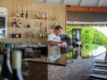 Этот курорт отлично подходит для тех кто: - не любит большие скопления людей - не любит дискотеки и громкую музыку - предпочитает питание а ля карт шведскому столу - умеет наслаждаться тишиной и уединением понравилось - хороший снорклинг: черепахи, акулы, много рыб, видели скатов разных размеров (самый большой был 1,5м в размахе крыльев) - 4 ресторана, хотя они и расположены как единый комплекс но меню разное - отличные блюда из говядины и свежей рыбы - можно запросить приготовить лично под твой запрос то, чего нет в меню - домашняя обстановка тк мало вилл (гостей) и поэтому персонал тоже немногочисленный и есть ощущение домашней атмосферы - вилла на воде ( мы без маленьких детей и любим когда есть ветерок чтобы было не жарко в течение всего дня)