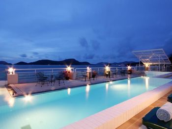 Зеленый отель, расположен в тихом месте, рядом достаточное количество кафе, есть 7-11, аптека, обменники. Вечерами напротив отеля на набережной уличный рынок с едой, фруктами, сувенирами. Пляж у отеля шикарный, без доступа посторонних, с бесплатными лежаками, зонтами, полотенцами. До пляжа возит автобус и фуникулер, ибо в гору кому-то тяжело. Можно пешком, занимает минут 7. В отеле два бассейна, один на крыше с шикарным видом, второй -внутри дворика основного корпуса. Персонал на ресепшен отзывчивый. Завтраки отличные