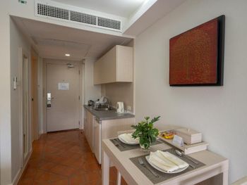 К услугам гостей номера с собственным балконом, кондиционером, просторной гостиной зоной с телевизором, мини-кухней с кухонными принадлежностями и собственной ванной комнатой с широким выбором туалетно-косметических принадлежностей.