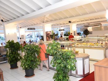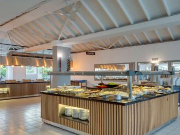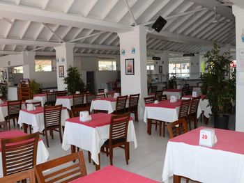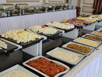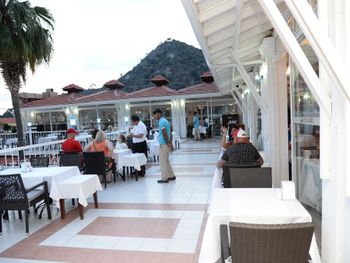 С едой всё очень неважно. Так называемый шведский стол превратился в унизительную процедуру выпрашивания каждого кусочка. Все блюда "шведского стола" за высоченной стеклянной витриной и накладываются сотрудниками столовой очень избирательно. Отдыхающие беспомощно тычут пальцами в стекло, и тут уж как повезёт. Можно выстоять очередь и получить сухой рыбий хвост, вместо рядим лежащих жирных кусочков из спинки, а вместо красного куска арбуза - белесый волокнистый прикорок. За едой, естественно, очереди, причём не одна, а несколько очередей, отдельно за мясом, отдельно за гарниром, пока стоишь, всё остывает, а сотрудник еле успевает обслужить. За тарелкой или чашкой горячего чая надо тянуться через высоченную витрину, рискуя ошпариться.Для ребёнка совсем неудобно. На столах нет соли, салфеток, всё надо собирать по разным углам столовой. Назвать это рестораном язык не поворачивается. Также не дают нормального хлеба. Вместо хлеба (который в Турции всегда был очень вкусный, свежий с хрустящей корочкой), и который всегда был в избытке даже в недорогих отелях, выдают равномерно мягкие малосъедобные булки в вакуумной упаковке, а на завтрак - маленькие булочки долгого хранения, которые разогревают на противнях, имитируя свежую выпечку. Своей выпечки у отеля нет, кроме блинов. Кофе плохой, только растворимый или капучино три в одном, также из порошка, Поэтому пить можно только чай. Заварной чай выдают только на завтрак, на обед и ужин - в пакетиках.