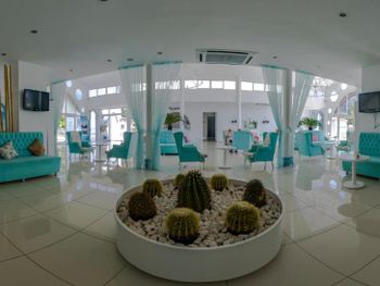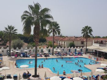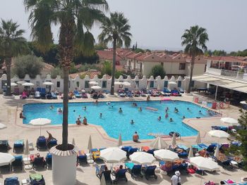 На территории отеля есть два бассейна, которые работают с 8.00 до 20.00. Вокруг стоят лежаки и зонтики, они бесплатные. Напитки в баре можно брать до 23.00. Вода, минералка, кола и тд, а также алкогольные. Есть платные опции. Аниматоры очень стараются, приятные ребята. Два раза в день проводили бильярд, днём было водное поло и «ложки» в бассейне. Номер просторный, кровать удобная, кондиционер работает исправно, есть холодильник. Что касается еды, то голодным не останешься. Шведский стол, большой выбор салатов. По вкусовым качествам средне. Также есть мороженое и кексы возле бассейна на полдник. Персонал, работающий в ресторане, очень вежливый. Говорят по-английски и немного понимают русский.