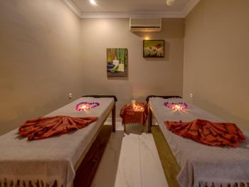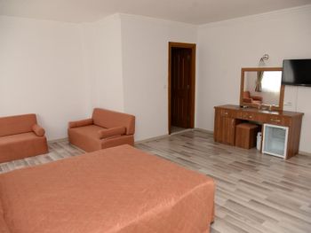 На ресепшене сидела женщина, которая мало того, что заявила нам сумму, большую чем была указана в брони, так ещё на нашу просьбу оплатить часть по карте и часть наличными (на карте лежала сумма ровно по брони), сказала: «У вас что денег нет?» Очень неприятный разговор. В самом номере убирались через день, хотя заявлено, что каждый, а полотенца меняют два раза в неделю. Полотенца желтые, уже повидавшие виды. Из фруктов давали арбузы, сливы, яблоки и груши. Вечерняя программа какая-то грустная, маленькая сцена, на которой бегают дети Алкоголь сомнительного качества. Оно и понятно, потому как наливают его в неограниченных количествах. Ну и сами постояльцы это наглые женщины из СНГ, которые ведут себя так, будто им все должны.