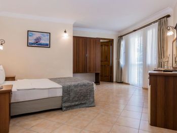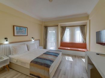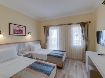 Отличное расположение, комфортный номер, сравнительно неплохой вайфай (в Турции с этим проблема). Мы приехали в 6 утра, нам пошли навстречу и сразу поселили в номер. Не пришлось ждать до 14:00. До моря пять минут по туристической аллее с магазинами и ресторанами