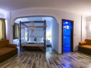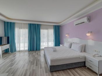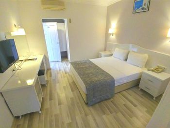 Внимание: после долгой дороги мы приехали в данный отель, на ресепшне нас встретили и попросили оплатить забронированы нами 2 номера, после того как мы оплатили полностью сумму, нам сказали что отель переполнен, номеров нет, и мы засели вас в другой отель, который находится в 2 раза дальше от моря, где то на окраине. Возврат денег делать не соглашались , пока мы сами не отменим бронь на букинге, несколько часов мы провели в коридоре отеля, прождав менеджера и пытаясь договориться об отмене оплаты, после чего пришёл менеджер и нашёл 2 свободных номера, других туристов не настолько настойчиво, отправили в другой отель. Сам отель, не соответствует 4 звёздам, уборка не каждый день, полотенца не меняют, еда очень скучный выбор, ложек и вилок постоянно не хватает на всех гостей. Не ожидал что в Турции, можно встретить отель с таким ужасным сервисом.