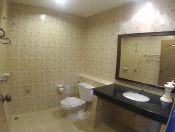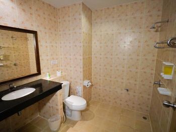 Большой номер. Большая ванна, есть холодильник, чайник, фен. Убираются по требованию, хоть каждый день. Ставят две воды ежедневно. Есть смарт ТВ. Можно бесплатно попить чаи по утрам.