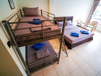 Надо понимать, что это хостел и не требовать ничего лишнего. 6 кроватей, даже не знаю сколько было посетителей, так как все перемещаются в своем режиме. Пересекался с одним дедом из Новой Зеландии, который ночью пердел, а утром скрипел ящиком. Нормальный санузел: две душевые и две раковины (одна душевая и одна раковина не работали), один сартир. Правда, рядом было еще помещение с сортиром и двумя раковинами, на сколько понял, общее, так как женский су находился отдельно. Время ожидания сортира и душевой - ноль. Приехал на Пхукет на 3 недели, хостел бронировал на 3 дня, чтобы осмотреться. На остальное время снял отель. Хотя, можно было и в хостеле остаться за 500 руб в сутки, но не было мест