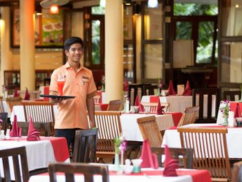 небольшой сад на территории ,Завтрак для 4 х звёзд приемлемый ,яйца готовят при вас как захотите ,сосиски ,мюсли ,фрукты все стандартно ,без излишеств,но для Тая вполне себе !!!