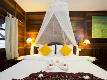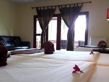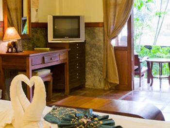 В номерах "бунгало" шумновато. Рядом с нашим номером был небольшой пруд, иногда в нем начинали истошно орать лягушки. С точки зрения расположения, к морю можно зайти только с концов пляжа, а отель находится практически по середине. Таким образом, от отеля до морюшка идти минут 10. А в остальном никаких минусов, все идеально.