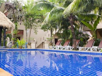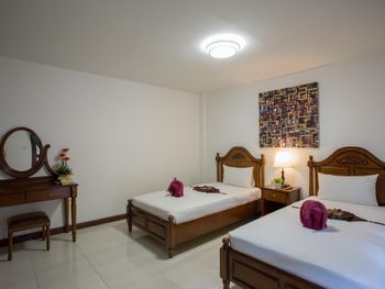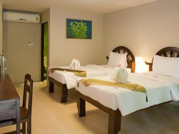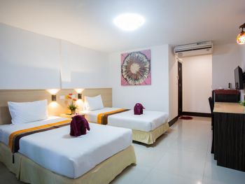 Выбирала отель, чтобы номер был с балконом, т к. с кондиционером спать не могу, хотела открывать окна на ночь. Но поселили в самом дальнем корпусе с выходом не террасу, по которой ходят соседи. Дверь не оставить открытой, никакого балкона нет. Кондиционер прямо над кроватью. Заменить отказались, сославшись на полную загрузку. Кстати, в основном гости -это пакетные туристы из России. Мои пожелания по поводу балкона мало интересовали тайцев, а вот вопрос "А если мне написать на Букинг? Это поможет решить проблему!" явно не оставил равнодушными))) На следующий день нашелся номер с балконом!!! Так что не стесняйтесь отстаивать свои права. Главное вежливо!!!! До пляжа идти минут 10. Лучше налево от отеля, там и ближе, и чище. В номере есть пляжная сумка с полотенцами и циновочкой. Каждый день принося воду и пакетики Нескафе и сахар.А вот постельное белье не очень приятное. Замызганное и старенькое. Завтраки не брала, чтобы не привязываться ко времени. В минуте от отеля 7eleven и куча ресторанчиков.