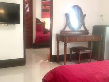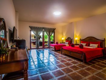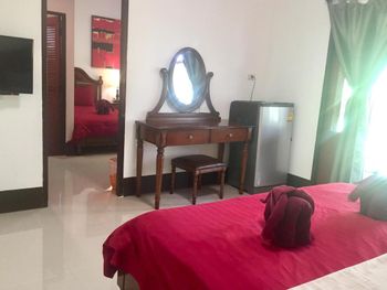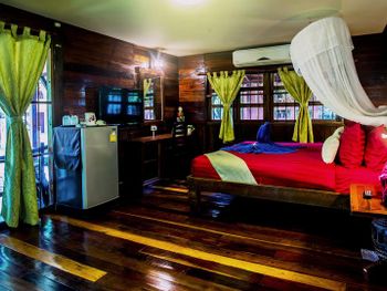 Так как территория в зелени, наличие комаров постоянно. В номере на двоих, один стул и одна тумба, на просьбу принести еще стул, игнор персонала. В номере нет шкафа! Весит одна перекладина, на огромный номер, Нет элементарно, поверхностей, на что ставить, на что класть вещи и предметы, хотя размер номера позволяет! Вещи хранили в чемодане или на полу, тем самым создавая массу неудобств. Кондиционер не может работать постоянно, если его оставить, начинает капать вода на пол. Что удивительно, таких моментов не было в предыдущем отеле, по более экономичной цене! Бассейном не пользовались, очень сильно пахло хлором. Жили в номере Супериор.