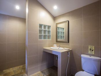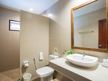 Единственный плюс, это то, что в ванных комнатах душ отделяется перегородкой от остальных частей (раковина, унитаз). Во многих отелях ее нет - и в итоге вся комната залита водой и не сохнет. Ну, и расположение хорошее.