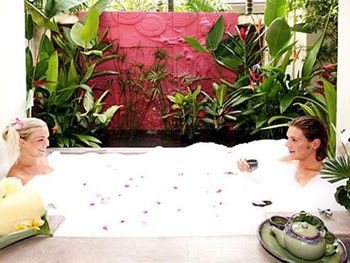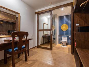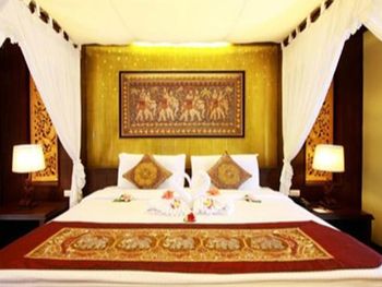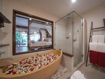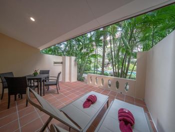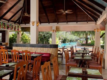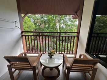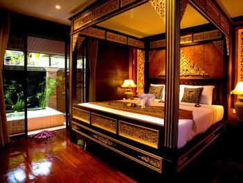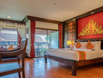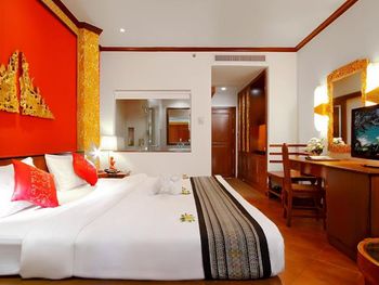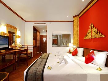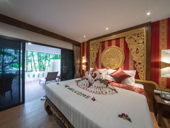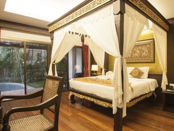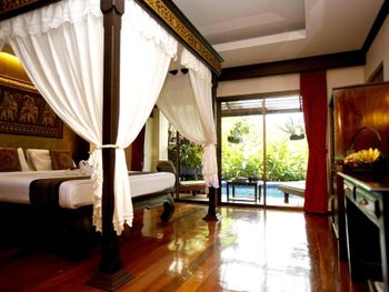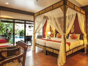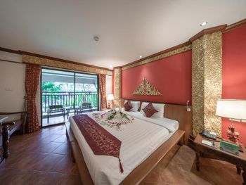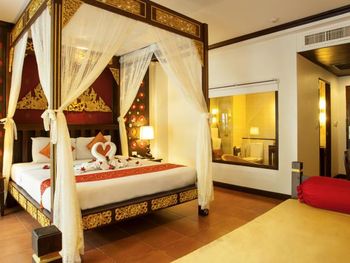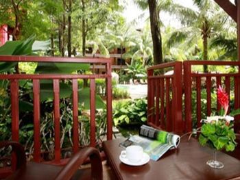Из роскошных номеров с собственными балконами открывается вид на бассейн или на тропические пейзажи. Номера оформлены в темно-красных тонах и обставлены элегантной деревянной мебелью. Также в них есть кабельное телевидение, сейф и холодильник.
