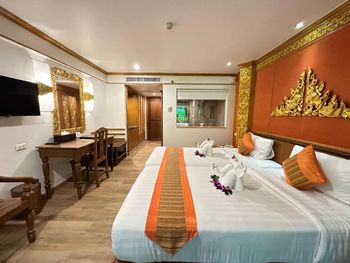 Персонал крайне неприветливый, лишний раз не поздороваются. Полы в номере были грязными по приезду, босиком невозможно было ходить, я специально взяла салфетку, протерла ею пол и оставила на полу, это не помогло , к сожалению, мой намёк никто не понял. Халатах в номере нет, тапки - это старые, реально уже ношенные сланцы. В номерах пахнет сыростью. Подушки жутко неудобные, но эту проблему мы решили, съездили в Villa Market (минут 10 на BOLT. Около 300батт) и там в HomePro купили хорошие латексные/memory foam подушки (699батт каждая).