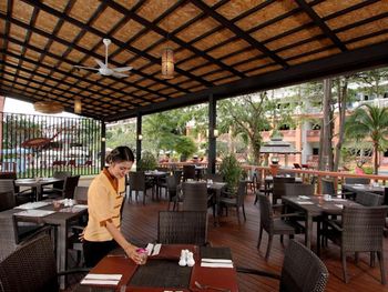 Зеленая территория, открытая территория для завтраков, расположение, много лежаков у разных бассейнов, зонты в номере (очень актуально в сезон дождей)Такое ощущение, что селят \'пакетных\' русских туристов, и таких же африканцев. Для которых громкое общение и включить шансон - это норма. Ужасного качества полотенца в номере, точнее застиранность этих полотенец, которые вместо белого цвета стали серо-желтыми (хотя пришит ярлычок 2019г., т.е. прошло не больше 9 месяцев), а еще пляжные полотенца - серого неприятного цвета, видимо сразу цвет такой выбрали, чтобы особо грязи не видно было. А еще не хватает радушия тайского некоторому персоналу на завтраках и на ресепшен. Просто разнорабочие и то больше улыбаются и здороваются. А еще неприятно, что берут залог при заезде 100$, и при выезде, когда торопились в аэропорт, то прежде, чем отдать эти 100$ проверяли минут 7 комнату. И еще по заезде - была грязная дверь в ванной комнате со следами от зубной пасты, грязи и т.п.