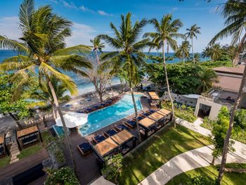 Потрясающее место, один из самых спокойных и уединенных отелей, в котором когда либо приходилось останавливаться. Если цель - спокойный пляжный отдых без детей, то Katamaran Resort точно не разочарует! Понравилось 99% всего, что довелось увидеть/попробовать за 10 дней пребывания в отеле. Особенно хотелось бы выделить персонал (все говорят на очень хорошем английском, всегда готовы помочь и подсказать, все очень доброжелательны и приветливы начиная от ребят на ресепшен и заканчивая хаускипингом), который делает все, чтобы Ваш отдых прошел на отлично (отдельное спасибо Toni с ресепшен за его заботу, честность и желание помочь во многих вопросах). У отеля невероятно красивая территория - видно, что работал профессиональный архитектор: территория хоть и небольшая, но как же красиво и органично все здания вписаны в ландшафт, абсолютно все на своем месте, есть несколько чилл-аут зон, где можно спокойно посидеть вдвоем и полюбоваться закатом. Очень понравился номер (Premier) - нам сделали бесплатный апгрейд на 2 этаже с потрясающим видом на океан (это лучший ocean view в котором я когда либо останавливался) - просто потрясающе, огромные панорамные стеклянные двери с выходом на террасу, океан настолько близко, что можно просто спуститься вниз в тапочках и через 20 метров, ты уже купаешься. Дизайн номера тоже оставил приятные впечатления - все выдержано в эко-стиле, много дерева, что опять же очень приятно глазу и органично вписывается в концепцию отеля на береговой линии. Хороший фитнес на крыше многоэтажного корпуса (опять же с видом на океан) с небольшим, но достаточным набором тренажеров, чтобы поддерживать себя в форме.