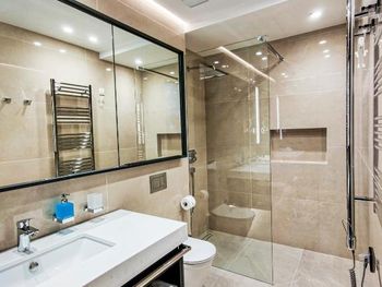 Современная комната с балконом в сторону моря. Oчень чистая и удобная душевая комната.