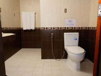 Кондиционер слабый, маленькая сушилка для белья, пыль кое-где, дохлый таракан в ванной, ремонт в ванной не очень свежий, рядом стройка, но ее не слышно. Бассейн хлоркой не пахнет-мы не рискнули залезать. Были в мае- купаться опасно из-за муссонов, море с медузами, слишком теплое-противно залезать в воду, хотя песочек классный. Между отелем и пляжем узкая улица без тротуара с магазинами и кафе-все грязное, неуютное. Выйти некуда.