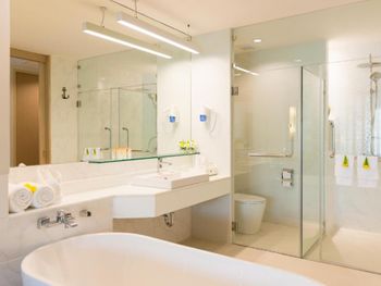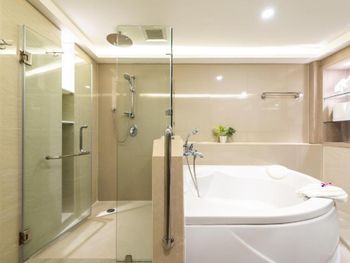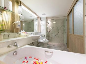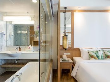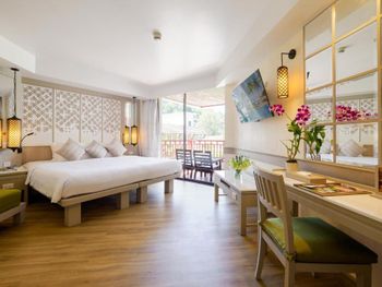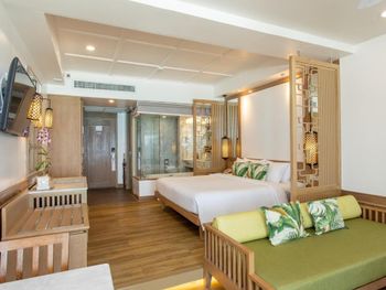 Featuring private balconies overlooking landscaped grounds, Katathani’s spacious rooms are fitted with Thai-style furnishings and wooden flooring. Each comes with cable TV and a glass-walled bathroom.