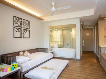 В номере было очень влажно и сыро, пол в номере постоянно был мокрый, пахло плесенью и чем- то не очень приятным , даже постельное белье было влажным. кондиционер не справлялся . в ванной были муравьи, косметичку с кремами было не достать. территория без зелени хоть и большая , просто газон. из 7 забронированных дней, на 3 день мы не выдержали и уехали. На этот момент мы были в Тайланде уже 4 месяц и эта была самая НЕ 5*!!