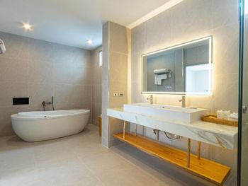 All rooms and villas come with a 42-inch LCD TV with satellite channels, minibar and safety deposit box. They also have bathrobes and hairdryer. Free toiletries are included in an en suite bathroom.