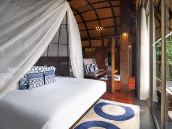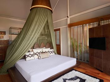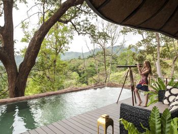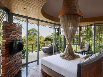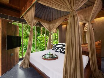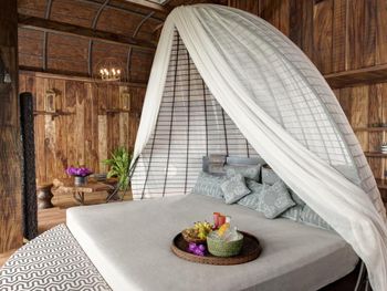 не берите номер с тентом. отель находится в лесу и все что падает на тент ( насекомые, листья, палочки ) все издал звук, спать очень трудно. и рано утром начинает петь Мула.