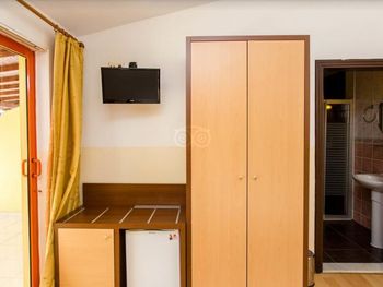 Вполне нормальный номер, минимальный набор удобств есть - тв, холодильник рабочий, тумбочки, зеркало, шкаф, есть одеяло на случай прохлады. Уютный балкон со столиком и стульями.