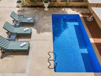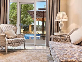 Номера с бассейном выходят на дорогу. Очень шумно. Очень старые телевизоры. Можно сказать позорные для отеля такого уровня (Sony Bravia). Лежаки старые, у некоторых нет деревянных ручек.
