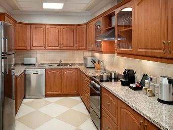 Огромный номер с двумя спальнями, который мы не бронировали. Кофе-машина и кофе в номере - это плюс. Наличие кухни в апартаменте - это тоже, наверное, плюс, хотя, кроме холодильника мы ничем не пользовались.