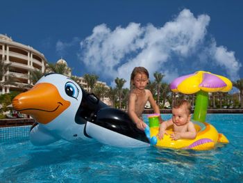 Развлечения для детей довольно ограничены - есть только детская комната без окон (там ребенка можно оставить под присмотром аниматоров, но те особой активности не проявляют, просто следят, чтобы дети не убились), и небольшая детская площадка на улице для самостоятельного использования. Рядом с отелем нет ничего интересного - пешком никуда не пойдешь. У нас был half board. Еда в ресторанах при отеле нам не понравилась - вроде, все честно, но невкусно. Правдиво ответив на дежурный вопрос официанта "вам все понравилось?" мы вызвали фурор - персонал долго пытался выяснить, что же не так с едой, к нам несколько раз приходил менеджер, какие-то дополнительные блюда приносили, как "комплимент" - вкуснее от этого не стало, но персонал так переживал, что нам стало их жаль и мы больше не капризничали.