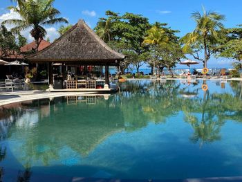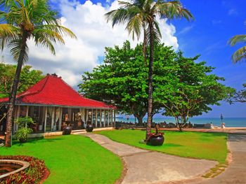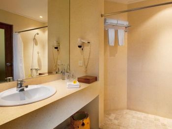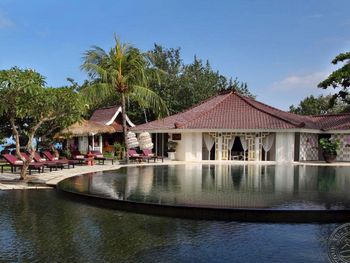 Зелёный, аутентичный отель. Территория довольно большая, утопает в зелени и цветах. Персонал очень старается, постоянно кто то щёлкает ножницами в саду. Все выполнено в Балийском стиле - статуи, дорожки, лобби отеля. Отовсюду звучит Музыка - перестукивание барабанов и колокольчиков. Номер был просторный, с резной кроватью. Большой бассейн, опять же в местом стиле, в воду сверху падают цветы. Очень красиво. Шикарный заход в море! Мягкий песочек на дне, море было очень чистое, приятное, освежающе-прохладное, можно было покачаться на волнах. Лежаки под деревьями, все в тени. Чтобы выбраться на солнце, надо их переставлять, а они довольно тяжелые. В ресторане при отеле можно поужинать, делают на гриле разные морепродукты, так же вечером есть небольшая анимация - танцы или живая музыка. Вообще в этом отеле мне больше всего понравилось Балийское оформление и персонал - вежливый, услужливый, приходили вечером подготовить постель ко сну. Завтраки нормальные, лучше всего брать омлет, который приготовят специально для вас