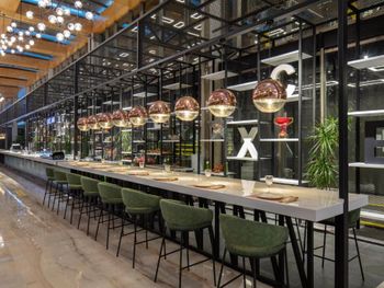 Красивое здание. Большой выбор блюд. Довольно вкусно. Хороший выбор крепких напитков, но плохой выбор вина. Близко к аэропорту. Хороший персонал