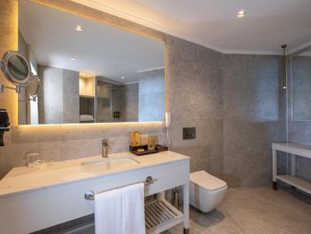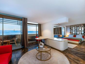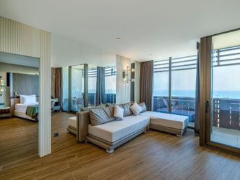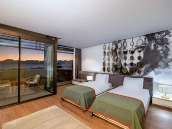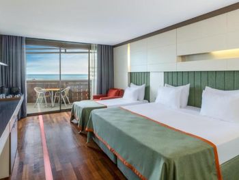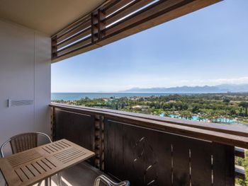 Мы отдыхали семьёй, дети 5 лет и 2,6 года. Нам очень понравился отель. Красивый интерьер. Отличные ассистенты на ресепшене ( отдельное спасибо Наталье и Александре). Все просьбы, даже нестандартные, были быстро выполнены. Многие из персонала понимают русский, стараются угодить, большинство приветливые. Удобные, чистые комнаты. Мыло, шампунь фирмы L\'Occitane и чистые полотенца пополнялись каждый день. Большая ванная комната с просторным душем. Удобные кровати. Две подушки разного размера. Из номера из нашего номера было вид море, но большая часть на соседние отели и город. Еда разнообразная и очень вкусная. Много мяса, рыбы, фруктов и местных сладостей. Все свежее. Всегда было свободное место в столовой. Есть отдельные маленькие столы для детей и совмещённые со взрослыми. Также для детей выдаются одноразовые фартуки, чтобы они не испачкались во время еды. Большое количество наименований алкоголя в баре. Кроме этого на территории отеля есть ещё как минимум 5 ресторанов, с разной тематекой, и баров. Для посещения этих ресторанов нужно заказывать столик заранее. Кроме этого, на теретории отеля есть кафе Старбакс и мороженное. У бассейна и на пляже всегда были свободные жезлонги. Бары с напитками и свежими фруктами рядом. Аквапарк на высоком уровне, но детям младше 5 лет будет страшновато. Был открыт с 10:00 до 12:00 и с 14:00 до 16:00 каждый день. Отличный пляж. Дно не пологое, резко уходит в глубину. В баре на берегу после обеда была клубная музыка. Разнообразная вечерняя программа. Детский клуб с разнообразными развлечениями работает с утра до вечера. Из аэропорта приехали на такси за 20 долларов. Дорога заняла 25 мин примерно. Если заказывать трансфер, выйдет чуть дороже. До Анталии тоже близко, примерно 15 - 20 минут езды. Недалеко от отеля, в пешей доступности есть магазины и рестораны.