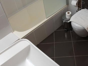 Очень простой завтрак. Стройка по соседству. И номер (ванная явно не готова к сезону- Штукатурка отваливается с потолка…