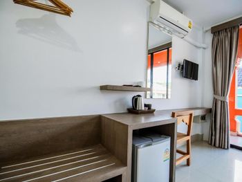 Несмотря на немного уставший вид номера, обслуживание было на высоте. Очень добродушный милый персонал. Уборка была КАЖДЫЙ ДЕНЬ! Каждый день приносили свежие полотенца и перестилали белье, мыли пол. Когда мы возвращались в номер всегда было чисто и аккуратно. Каждый день ставили 2 бутылки воды; а чай/кофе по мере того, как они заканчивались. В номере есть холодильник, сейф, чайник, кондиционер, фен. В свободном доступе на 1 этаже в холле пляжные полотенца, можно взять лежак и даже зонтик от солнца (но не пляжный). На ресепшн можно заказывать завтраки за 150 бат, а также трансфер и экскурсии. Воспользовались услугой трансфера в аэропорт (800 бат), накануне дня вылета утром оформили трансфер, машина приехала чётко в оговоренное время.