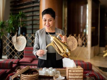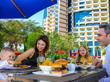 Гости смогут отправиться в настоящее кулинарное путешествие в ресторанах отеля. В ресторане Kamoon с расслабляющим видом на бассейн подают блюда традиционной арабской кухни. В современном и элегантном ресторане Horizon, который работает весь день, готовят блюда интернациональной кухни. Ресторан The Lounge, из окон которого открывается прекрасный вид на бассейн, расположен в лобби и специализируется на легких закусках, лакомых десертах, разных видах кофе и полезных напитках.