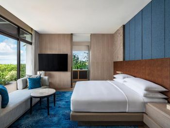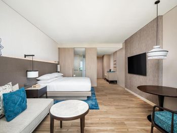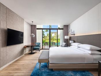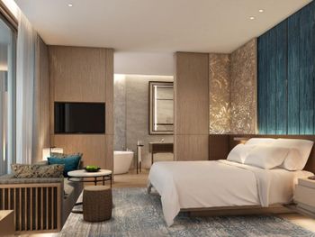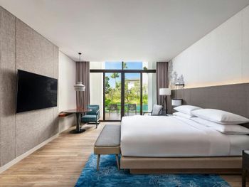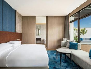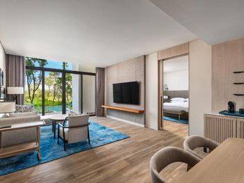 Великолепный новый отель. Наше пребывание было не забываемым. Вкусная еда, прекрасный пляж, чудное море. В номере есть всё необходимое: кружки для чая, бокалы для вина, стаканы, чай, кофе, халат, тапочки, зонты, гладильные принадлежности, фумигатор, полотенца для лежака у выхода к бассейну. Удобная кровать. В отеле три бассейна, один из них детский с горкой и разными интересными штуками. Есть детский клуб для маленьких и для подростков, песочница с игрушками. Есть уютное место с костром, который каждый вечер зажигают. Он работает на газу, поэтому нет запаха гари. Весь отель очень приятный, ухоженный, персонал классный. Есть парковка, но там нет навеса, автомобиль сильно греется на солнце. Уезжать не хотелось. С удовольствием вернёмся снова. Это самый лучший отель из всех, что мы посещали в Таиланде.