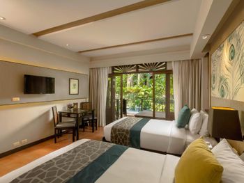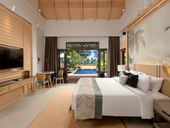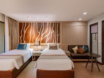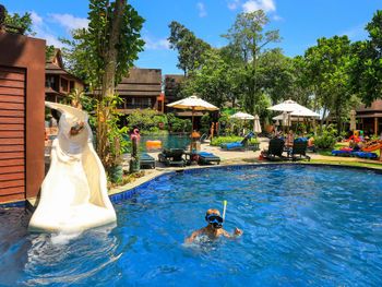 Отель абсолютно подошёл под наши требования (молодая семья с 1 младенцем). В нем есть как хорошие стороны, так и то, что заслуживает улучшений. Начнем с плюсов: 1. Сам номерной фонд отеля очень большой. Есть номера на любой вкус и карман. Начали с самого простого номера, но через пару дней апгрейдили до pool access. Номера просторные, вмещают детскую кроватку, которую любезно предоставили. Есть банные принадлежности, пляжные полотенца, даже спрей от комаров (правда, он не пригодился). Есть телевизор, но смотреть можно 1-2 канала. Интернет шустрый — скачал 5-6 сезонов сериала за 1 ночь. WiFi ловит везде, даже на пляже. Читал в отзывах, что мебель старенькая, но это не совсем так. Мебель, по-моему, аутентичная, несколько раз, видимо, реставрировалась, но это не плохо. Я честно этого даже не замечал, глаз радовался природе отеля. 2. Природа и ландшафтный дизайн внутри отеля вызывают положительные эмоции. Флора и фауна здесь на высоте. Можно увидеть, как варан ползает по территории, или белки прыгают из дерева в дерево. 3. Пляж. Сразу скажу, что этот пляж нравится нам больше, чем любой другой в Таиланде (мы уже здесь в третий раз). Бывали почти во всех провинциях, и определенно этот лучший. Да, есть чутка волн, приливы по утрам, но где их нет? Просто здесь все как-то... комфортно. Мы с ребенком купались вблизи каменистых образований, там волны вообще не доходили, создавая своего рода мини-прудик, где ребенок мог спокойно поплавать. Видел, как пляж чистят, рядом вся необходимая инфраструктура: кафешки, массаж, даже можно вещи сдать на стирку за 70 батт/кг. 4. Бассейны. Их здесь много, даже слишком. Если считать все бассейны, даже те, что приватные для специальных типов номеров, то я насчитал около 9. Для общего доступа — 5, есть уединенные, находящиеся на другой стороне отеля, есть те, что у пляжа с баром и детской горкой. Остановились первые два дня в номере без выхода на свой частный бассейн, а затем поменяли на номер с pool access, и скажу вам — это того стоит.
