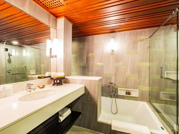 Комфортабельные тихие просторные номера курортного отеля Khaolak Merlin располагают искусной деревянной мебелью ручной работы и ванной комнатой с видом на живописный сад. Гости также могут остановиться на вилле с собственным бассейном.