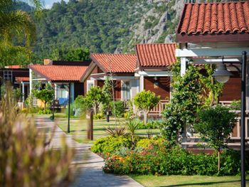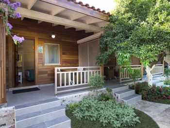 Начну с короткой истории. В отель из Анталии вёз таксист, который плохо говорил по английски. Но он был общительный. Когда он хотел сказать о чем то, что хорошо, он говорил good!. Если он хотел сказать очень хорошо, замечательно и великолепно, он говорил very, very, very good!!! Так вот это отель «very, very, very good!!!». Инфраструктура отличная, все в зелени, все ухоженное. Растут апельсиновые, лимонные деревья. Растут два дерева с грейпфрутами. Плоды можно рвать. Апельсины в конце марта уже спелые. Персонал внимательный, вежливый. Многие понимают и разговаривают по русски. В домике все целое, не битое, не обшарпанное. Кровать удобная, матрас в меру упругий. Постельное белье качественное. Цены в ресторане приемлемые. Кухня хорошая. До моря очень близко. До достопримечательностей Химера и город Олимпос примерно одинаковое расстояние. В конце марта погода переменчива, может пойти дождь на весь день. Тогда погода около 12-15 градусов. В солнечную погоду около 19 градусов. Всегда дует ветер, то сильно, то слабо.