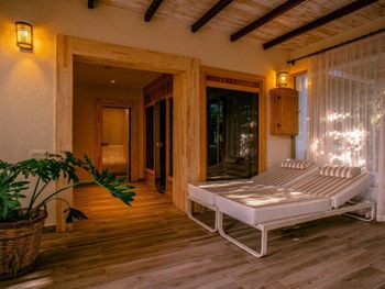 Хорошая комфортная территория отеля, все нужное есть на территории. Удобный номер-домик, вкусные ужины. Наличие бассейна было немаловажным фактором при выборе. Есть пляжные полотенца, их можно менять несколько раз в день. Отличный спа-центр, он небольшой, но для уютного релакса подходит, массажисты понравились. Все отдыхающие равномерно распределяются по территории отеля или другим локациям - нигде нет ощущения перегруженности.